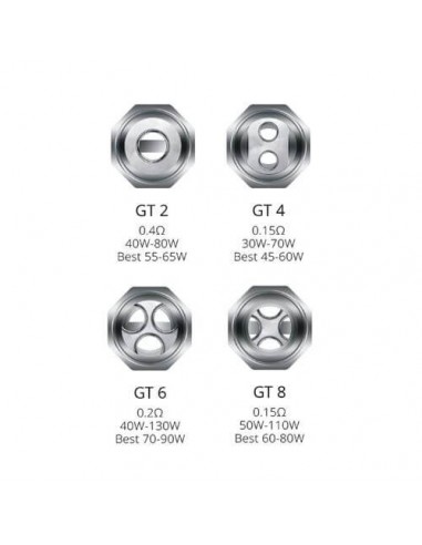Las resistencias GT2 core de Vaporesso están especialmente diseñadas para trabajar en armonia con el atomizador NRG y NRG SE. Son una bobina doble que equivalen a dos resistencias dando un ohmiaje de 0.40 ohm. Resultan muy equilibradas entre la producción de vapor que dan y el sabor que nos ofrece.